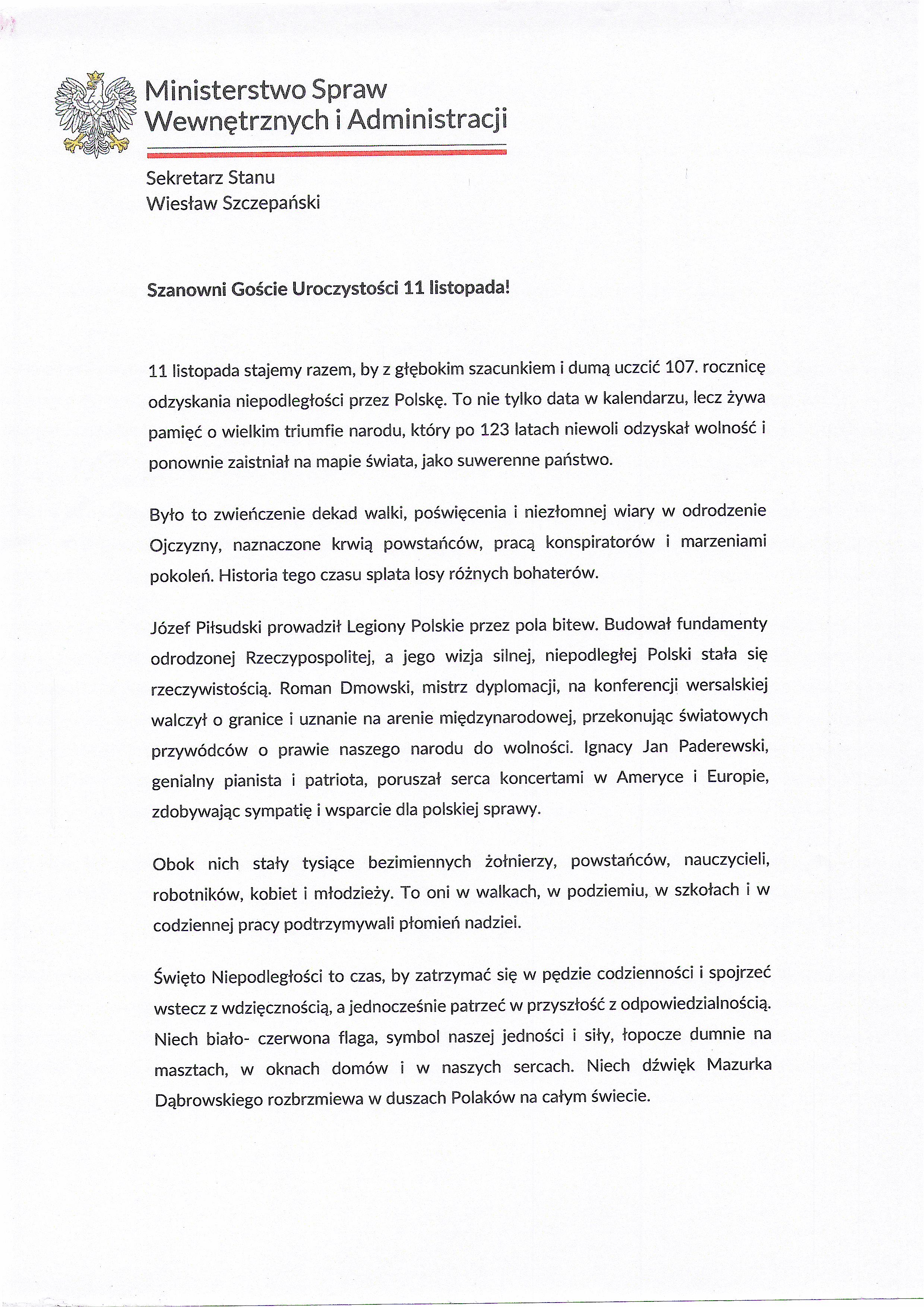 W uroczystościach wzięły udział postaci historyczne związane z naszą gminą oraz polityką ogólnokrajową: