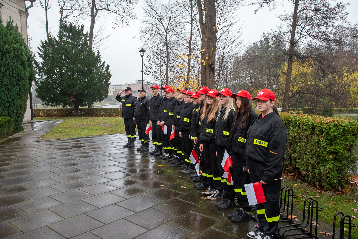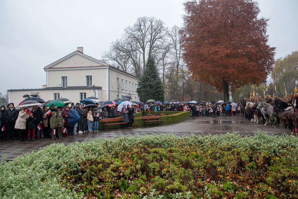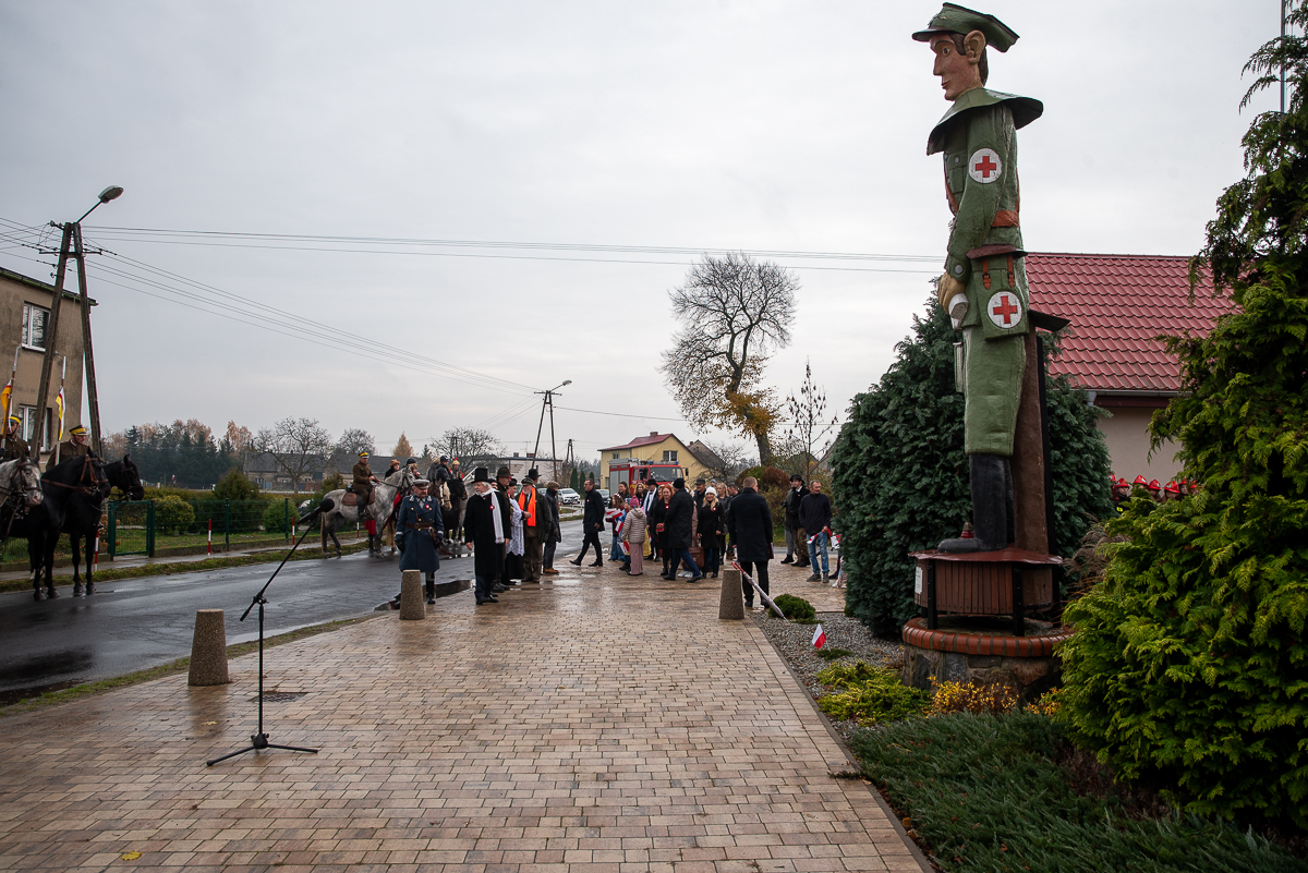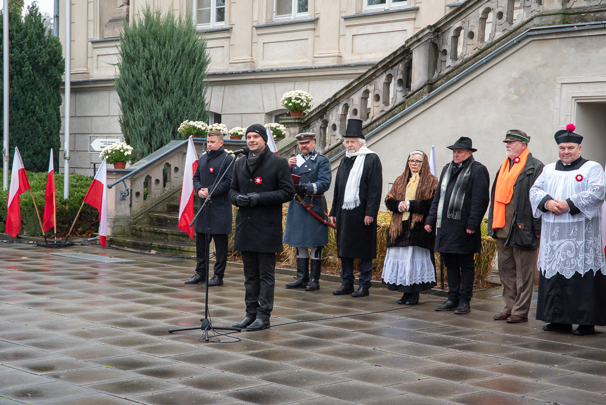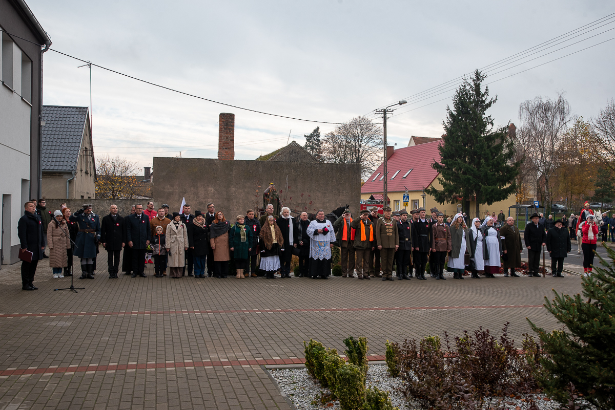 Na część główną uroczystości przed Pałacem Sułkowskich korowód został wprowadzony przez Mażoretki Twins oraz Młodzieżową Orkiestrę Dętą Blue Brass Band, która już pod budynkiem urzędu Gminy Włoszakowice odegrała hymn Polski oraz Warszawiankę – hymn gminy Włoszakowice. W tym miejscu wójt Marek Wąsowicz powitał wszystkich uczestników przejazdu oraz zgormadzonych i podziękował za udział w uroczystościach mimo niesprzyjającej aury. Do zebranych zwrócił się także Marszałek Józef Piłsudski oraz Premier Ignacy Jan Paderewski, którzy w swoich wystąpieniach odnieśli się do patriotycznych wartości oraz odradzającego się państwa polskiego.